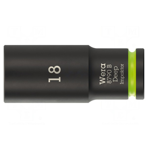 Nasadka udarowa typu 6-kątnego posiada gniazdo montażowe o rozmiarze 3/8" oraz profil HEX 18 mm. Konstrukcja narzędzia została zoptymalizowana do pracy z urządzeniami udarowymi.