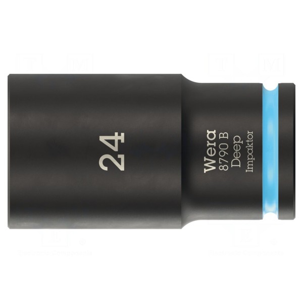 Nasadka udarowa o profilu 6-kątnym przeznaczona jest do pracy z napędami o rozmiarze 3/8". Narzędzie charakteryzuje się rozmiarem gniazda HEX 24mm oraz konstrukcją typu długiego, której całkowita długość wynosi 63mm.