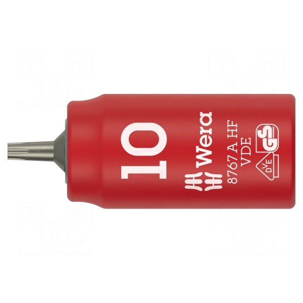 Nasadka VDE HF TORX® Zyklop to izolowane narzędzie przeznaczone do prac z gniazdami Torx® w rozmiarze TX10. Element posiada gniazdo uchwytu o wymiarze 1/4" i całkowitą długość wynoszącą 36 mm.