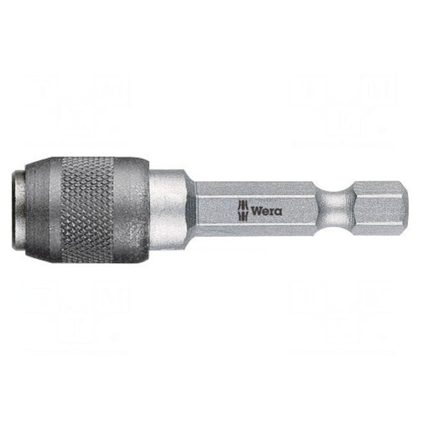 Uchwyt narzędziowy przeznaczony do pracy z końcówkami wkrętakowymi wyposażonymi w trzpień o rozmiarze 1/4". Element posiada gniazdo typu C6,3 o przekroju sześciokątnym, zapewniające stabilne mocowanie grotów.
