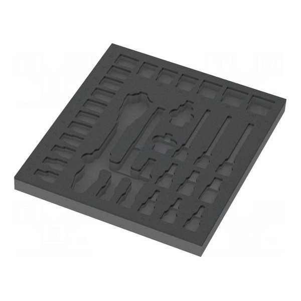 Akcesorium w formie wkładki piankowej przeznaczone do organizacji narzędzi w zestawie kluczy WERA.05150112001. Produkt służy jako element wypełniający opakowanie, zapewniając miejsce dla poszczególnych komponentów 31-częściowego zestawu.