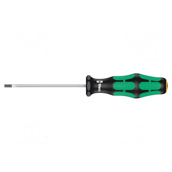 Wkrętak standardowy wyposażony w płaski grot o rozmiarze 2,5x0,4mm. Narzędzie posiada ostrze o długości 75mm.