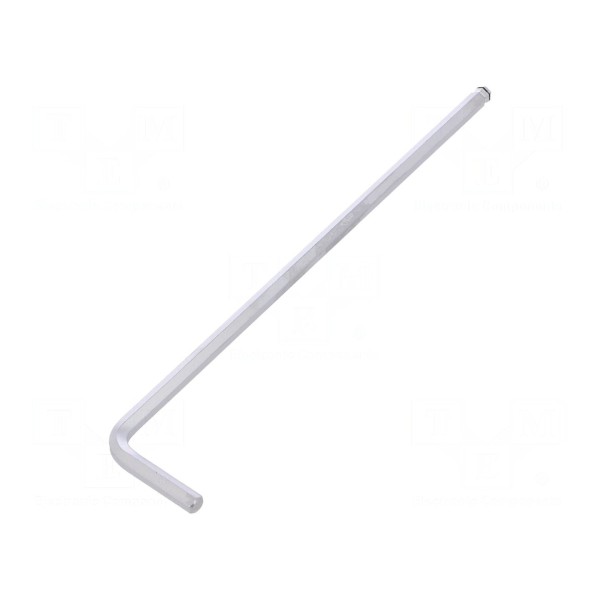 Klucz imbusowy o rozmiarze HEX 4mm został wykonany ze stali chromowo-wanadowej. Narzędzie wyposażono w końcówkę kulistą, która umożliwia pracę pod kątem w trudno dostępnych miejscach.