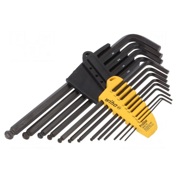 Zestaw 13 kluczy imbusowych HEX, calowe, kuliste