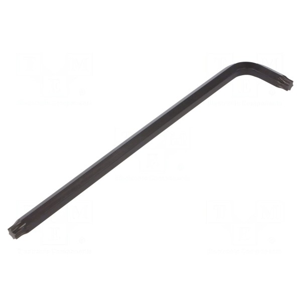 Powierzchnia klucza została poddana procesowi czernienia w celu zabezpieczenia materiału. Konstrukcja wykonana z trwałego stopu chromowo-wanadowego zapewnia odpowiednie właściwości użytkowe przy pracach z elementami złącznymi o profilu Torx.