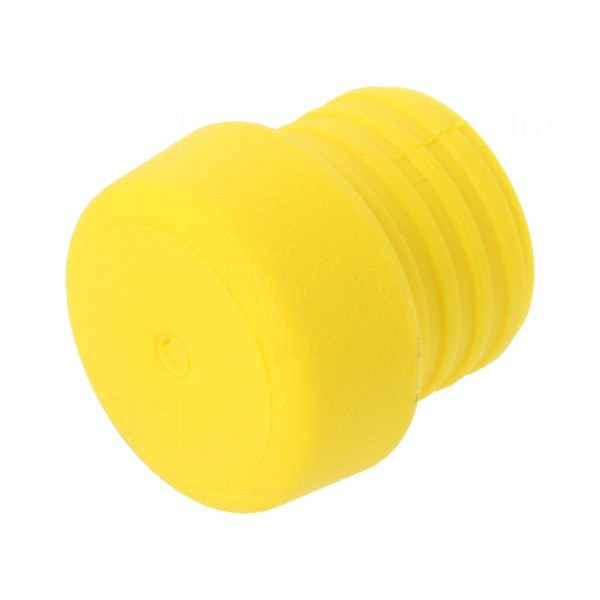 Końcówka do młotka wykonana została z poliuretanu, co zapewnia odpowiednią charakterystykę pracy przy różnorodnych zadaniach. Element ten charakteryzuje się żółtym kolorem, który identyfikuje go jako końcówkę średnio twardą.