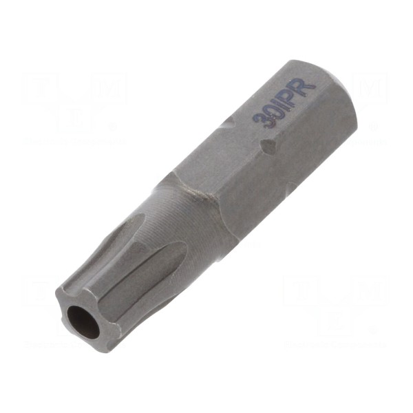 Końcówka wkrętakowa typu Torx® PLUS z zabezpieczeniem przeznaczona jest do współpracy z uchwytami o gnieździe 1/4". Element posiada rozmiar grota 30IPR oraz całkowitą długość wynoszącą 25mm.