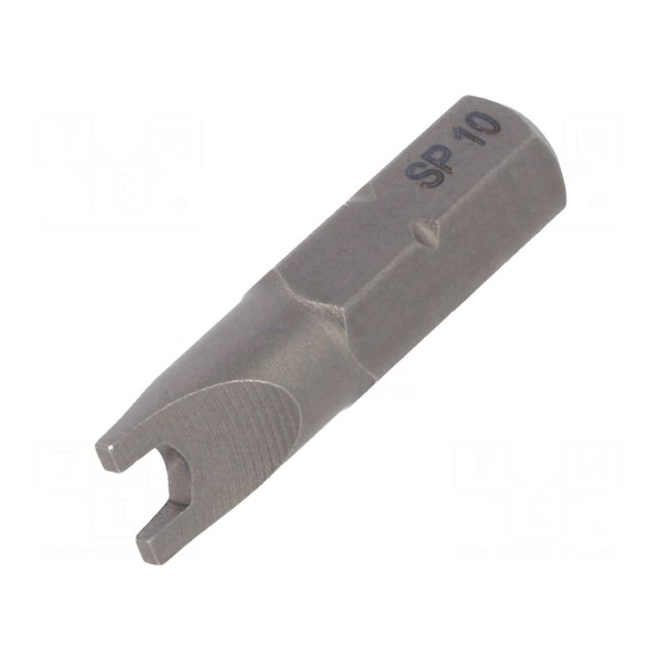 Końcówka wkrętakowa typu Spanner o rozmiarze grotu SP10 przeznaczona jest do współpracy z wkrętakami wyposażonymi w uchwyt o rozmiarze 1/4" (C6,3 mm). Element ten charakteryzuje się całkowitą długością wynoszącą 25 mm.