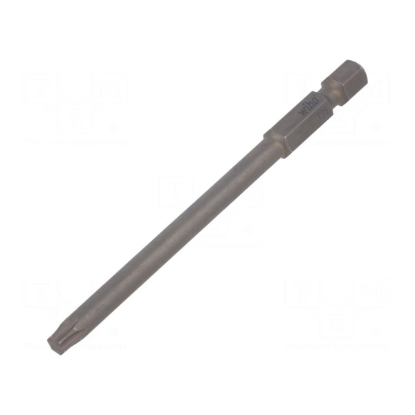Końcówka wkrętakowa typu Torx o rozmiarze TX25 przeznaczona jest do współpracy z narzędziami wyposażonymi w gniazdo 1/4". Element charakteryzuje się długością całkowitą wynoszącą 90 mm oraz uchwytem typu E6,3 mm.
