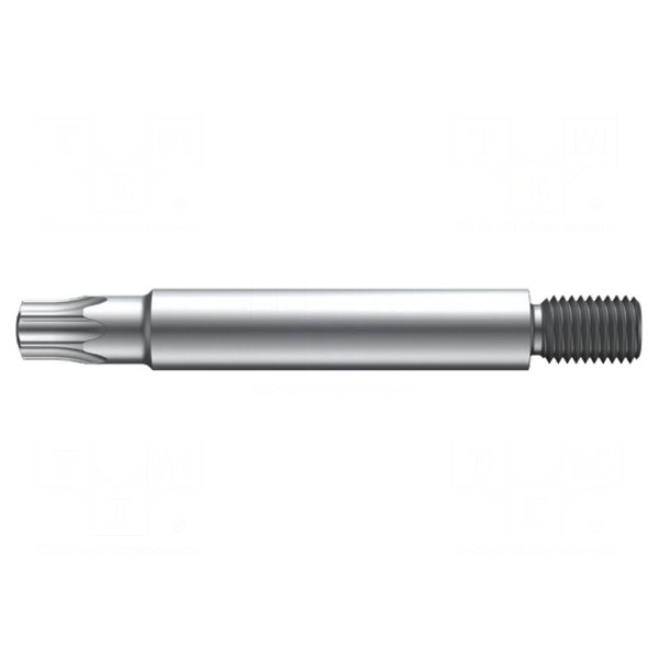 Końcówka wkrętakowa typu Torx o rozmiarze grota TX20 charakteryzuje się całkowitą długością wynoszącą 45 mm. Element posiada gniazdo uchwytu o gwincie M5.