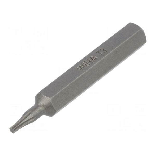 Akcesorium posiada grot typu Torx o rozmiarze TX03 oraz sześciokątny uchwyt o średnicy 4mm. Całkowita długość końcówki wynosi 28mm.