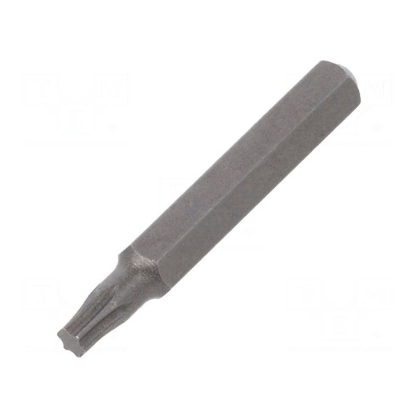 Końcówka wkrętakowa typu Torx o rozmiarze grota TX09 przeznaczona jest do współpracy z narzędziami posiadającymi sześciokątny uchwyt o średnicy 4mm. Element został wykonany ze stali chromowo-wanadowej, co zapewnia odpowiednią wytrzymałość materiałową podczas eksploatacji.
