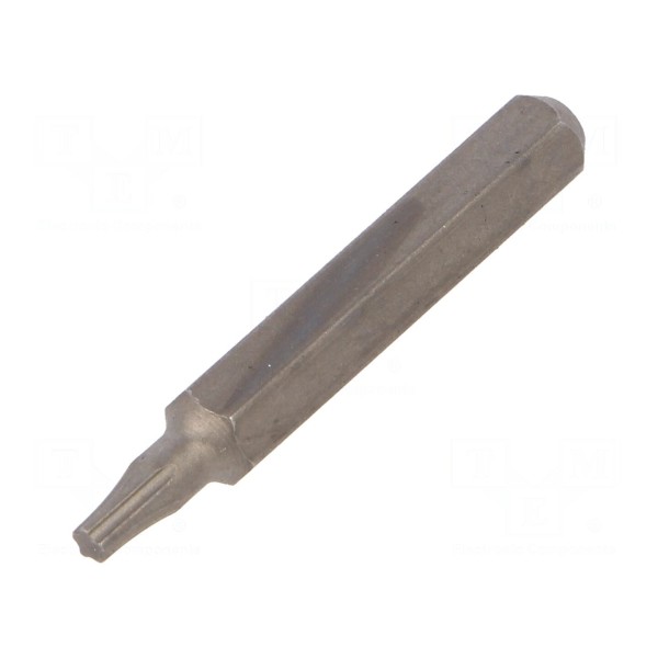 Element charakteryzuje się hartowaną powierzchnią grota, co wpływa na jego odporność. Końcówka posiada uchwyt o przekroju sześciokątnym i całkowitą długość wynoszącą 28 mm.