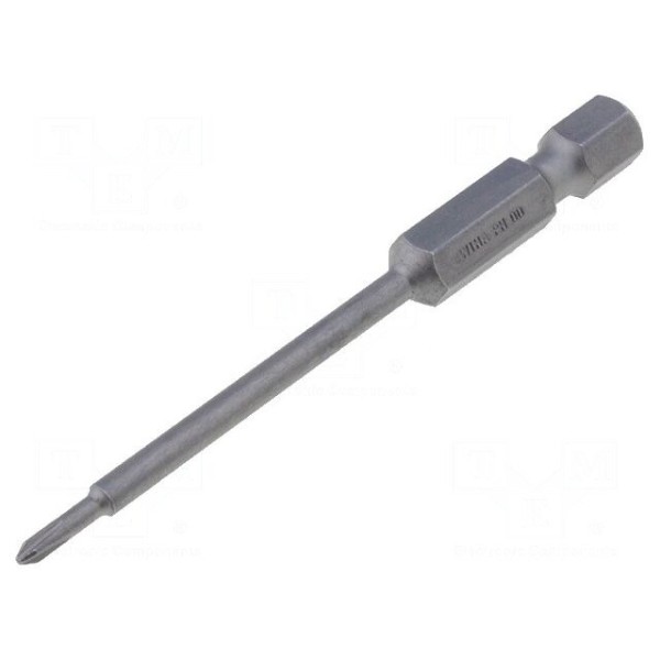 Końcówka wkrętakowa typu Phillips o rozmiarze PH00 przeznaczona jest do prac montażowych. Element o długości całkowitej 70 mm został wykonany ze stali chromowo-wanadowej, co zapewnia odpowiednią wytrzymałość materiałową.