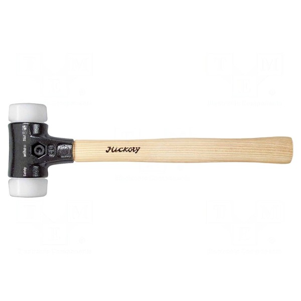 Młotek uniwersalny w wersji z miękkim obuchem Safety, przeznaczony do prac brukarskich oraz kamieniarskich. Narzędzie wyposażone jest w okrągłą końcówkę wykonaną z poliamidu o średnicy 80mm. Biała powierzchnia robocza charakteryzuje się bardzo wysoką twardością, co pozwala na skuteczne uderzenia w twarde materiały.