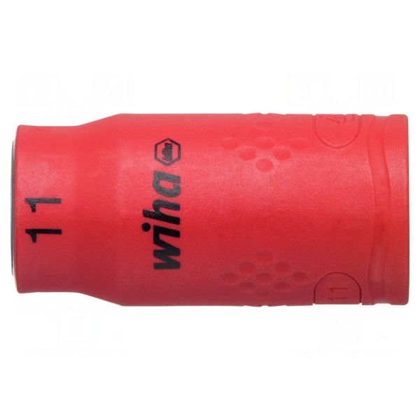 Izolowana nasadka 6-kątna o rozmiarze 11 mm przeznaczona do pracy z narzędziami wyposażonymi w zabierak kwadratowy 3/8". Konstrukcja narzędzia spełnia wymagania norm IEC 60900 oraz VDE, co pozwala na wykorzystanie go w pracach pod napięciem.