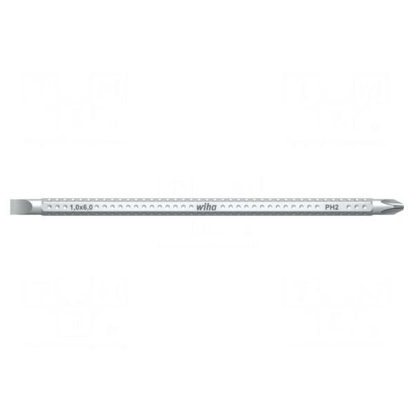Trzon wymienny typu System 6 przeznaczony jest do pracy z dedykowanymi rękojeściami. Grot wykonany został w konfiguracji Phillips PH2 oraz płaskiej o wymiarach 6x1mm.