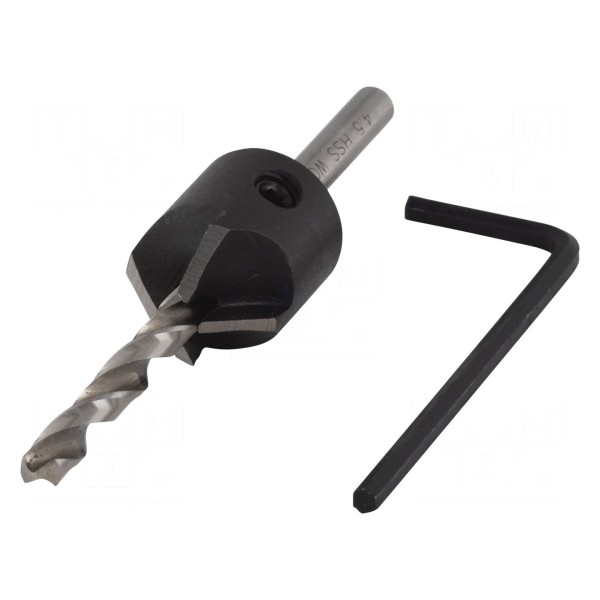 Nawiertak z pogłębiaczem przeznaczony jest do obróbki otworów w drewnie, tworzywach sztucznych oraz płytach wiórowych. Narzędzie wyposażone jest w wiertło o średnicy 4,5mm.