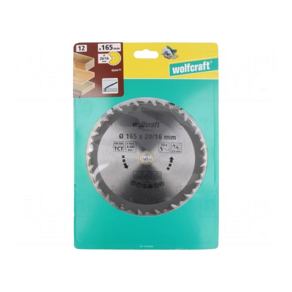 Piła tarczowa 165mm, 20 zębów, do drewna i płyt wiórowych