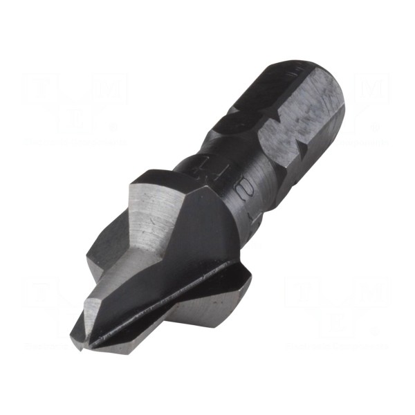 Pogłębiacz o średnicy roboczej w zakresie od 5 do 12 mm został wykonany ze stali narzędziowej. Przeznaczony jest do obróbki materiałów takich jak drewno, metal oraz plastik.