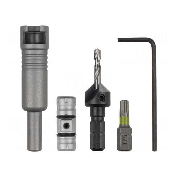 Zestaw narzędziowy marki Wolfcraft został wyposażony w gniazdo uchwytu o rozmiarze 1/4". Produkt przystosowany jest do obsługi uchwytów typu C6,3mm.