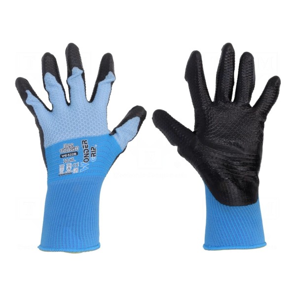 Rękawice ochronne nitrylowo-poliestrowe w kolorze niebieskim, rozmiar 10/XL