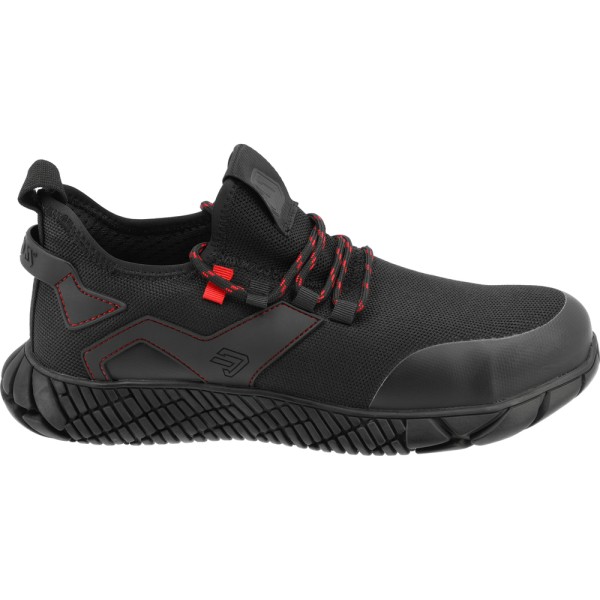 Podeszwa z nacięciami oraz antypoślizgowym bieżnikiem z gumy. Komfort użytkowania podwyższa wkładka typu popcorn design. Cholewka z tkaniny nylonowej przepuszcza powietrze. Warstwa z TPU na froncie podwyższa odporność cholewki na przetarcie.