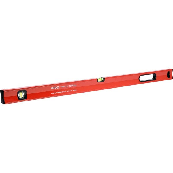 POZIOMNICA MAGNETYCZNA 1000 MM, PROFIL ALUMINIOWY, LAKIEROWANY, DWIE LIBELLE, UCHWYT, DOKŁADNOŚĆ 0,5 MM/M YT-30063
