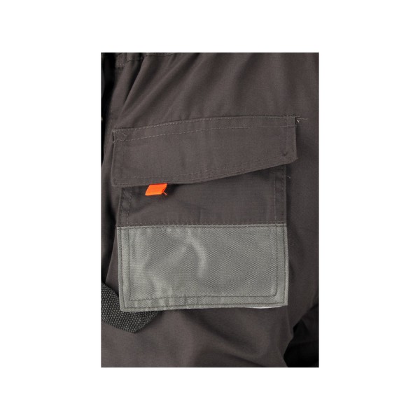 • z tyłu poniżej pasa dwie duże kieszenie z patką, zapinane na rzep, obszyte do połowy materiałem o wzmocnionej odporności na ścieranie