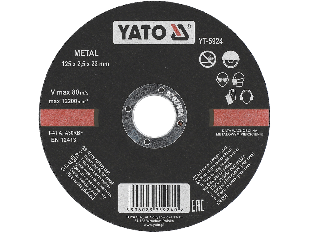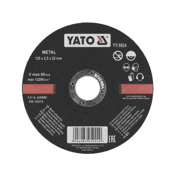 TARCZA DO CIĘCIA METALU 125X2,5X22 MM YT-5924 TARCZA DO CIĘCIA METALU 125X2,5X22 MM YT-5924 TARCZA DO CIĘCIA METALU 125X2,5X22 MM YT-5924