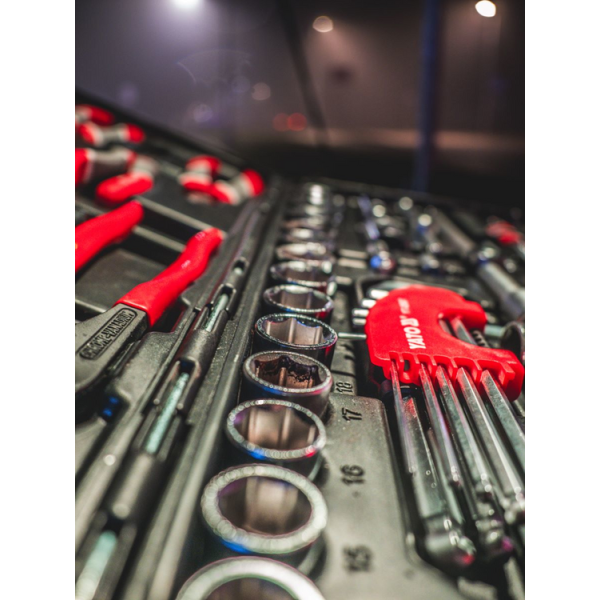 Zestaw przeznaczony do czynności serwisowych związanych z odkręcaniem i przykręcaniem połączeń gwintowych, dokręcaniem śrub oraz prac przy zawieszeniu i osprzęcie w motoryzacji.