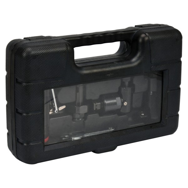 • Zestaw zawiera: obudowę napędu, 3 przystawki, złącze do węża, 4 klucze do uchwytu narzędziowego