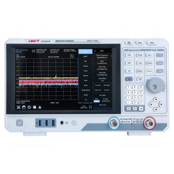 Analizator widma UTS3021B pracuje w zakresie częstotliwości od 9kHz do 2,1GHz przy rozdzielczości 1Hz. Urządzenie oferuje pomiar amplitudy z poziomem odniesienia mieszczącym się w zakresie od -100dBm do 30dBm. Za wizualizację danych odpowiada ekran dotykowy typu LCD TFT o przekątnej 10,1 cala i rozdzielczości 1280x800 pikseli.
