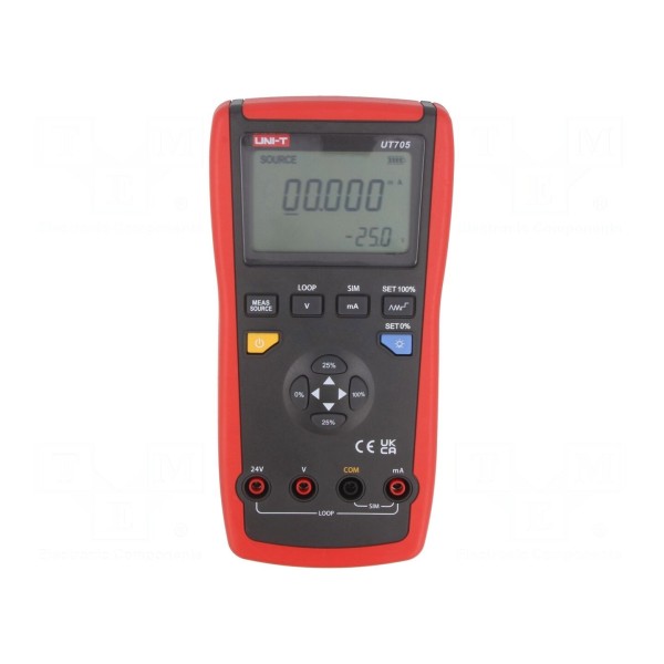 Kalibrator pętli UNI-T UT705 służy do pomiaru napięcia DC, prądu DC oraz pętli prądowej 4–20mA. Zakres pomiarowy dla napięcia DC wynosi 30V, natomiast dla prądu DC mieści się w przedziale 0–24mA. Urządzenie charakteryzuje się dokładnością pomiaru na poziomie ±(0,02% + 2 digit) zarówno w przypadku napięcia, jak i natężenia prądu.