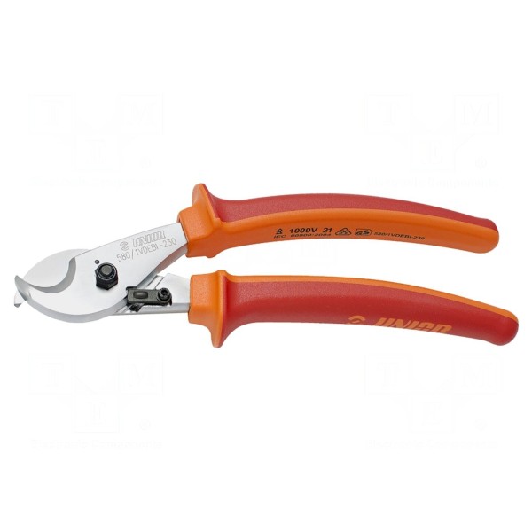Nożyce przeznaczone są do cięcia kabli. Narzędzie charakteryzuje się izolowaną konstrukcją, co pozwala na wykorzystanie go przy pracach w warunkach wymagających ochrony przed porażeniem prądem elektrycznym.