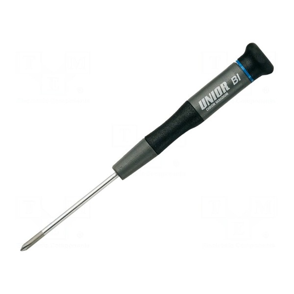 Wkrętak precyzyjny z grotem typu Phillips w rozmiarze PH1 przeznaczony jest do prac montażowych wymagających wysokiej dokładności. Ostrze o długości 80mm wykonano ze stali chromowo-wanadowej, co zapewnia parametry użytkowe dopasowane do charakterystyki narzędzia. Całkowita długość wkrętaka wynosi 173mm.