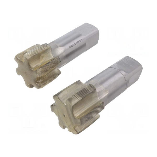 Gwintownik ręczny przeznaczony do nacinania gwintów typu PG o rozmiarze PG42. Narzędzie zostało wykonane ze stali szybkotnącej szlifowanej HSS-G, co zapewnia jego charakterystykę materiałową w procesie obróbki skrawaniem. Produkt jest zgodny z normą DIN 40432.