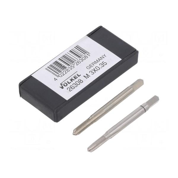 Gwintownik ręczny przeznaczony do nacinania gwintów drobnozwojowych o wymiarze M3 oraz skoku 0,35mm. Narzędzie zostało wykonane ze szlifowanej stali szybkotnącej HSS-G, co zapewnia odpowiednią trwałość podczas obróbki mechanicznej.