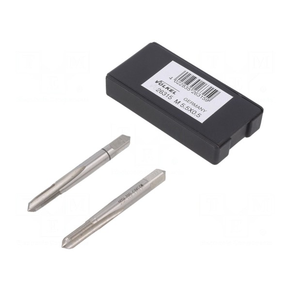 Gwintownik ręczny VÖLKEL 26315 przeznaczony jest do nacinania gwintów drobnozwojowych M5,5 o skoku 0,5 mm. Narzędzie wykonano ze stali szybkotnącej szlifowanej HSS-G, co zapewnia wymaganą twardość materiału podczas obróbki skrawaniem. Produkt jest zgodny z normą DIN 2181 i dostarczany w opakowaniu zawierającym 2 sztuki.