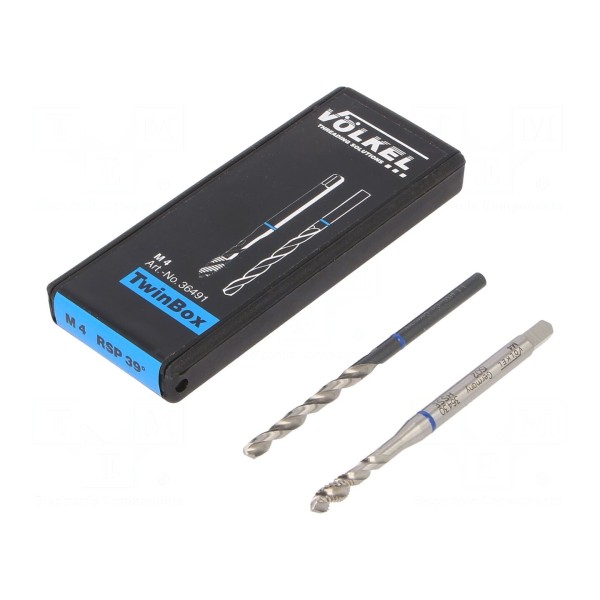 Konstrukcja narzędzia zapewnia odpowiednie odprowadzanie wiórów podczas pracy maszynowej. W zestawie znajdują się 2 sztuki produktu. W zestawie: gwintownik, wiertło.