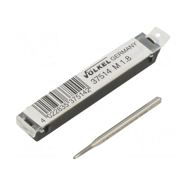 Gwintownik maszynowy VÖLKEL o wymiarach gwintu M1,8 i skoku 0,35 został wykonany ze stali szybkotnącej kobaltowej HSS-E. Narzędzie przeznaczone jest do nacinania gwintów w otworach przelotowych, spełniając wymagania normy DIN 371 oraz tolerancji ISO2/6H.