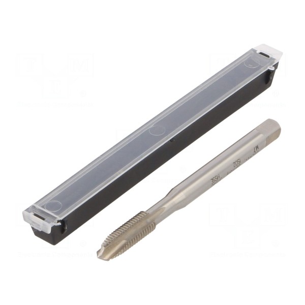 Gwintownik maszynowy przeznaczony do nacinania gwintów M7 o skoku 1. Narzędzie zostało wykonane ze stali szybkotnącej kobaltowej HSS-E, co zapewnia odpowiednią wytrzymałość materiałową podczas pracy. Konstrukcja elementu jest zgodna z normą DIN 371 oraz klasą tolerancji ISO2/6H.