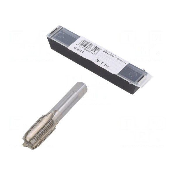 Gwintownik maszynowy przeznaczony do wykonywania gwintów calowych typu NPT 1/4". Narzędzie zostało wykonane ze stali szybkotnącej szlifowanej HSS-G, co zapewnia odpowiednią charakterystykę materiałową w procesie nacinania gwintów.