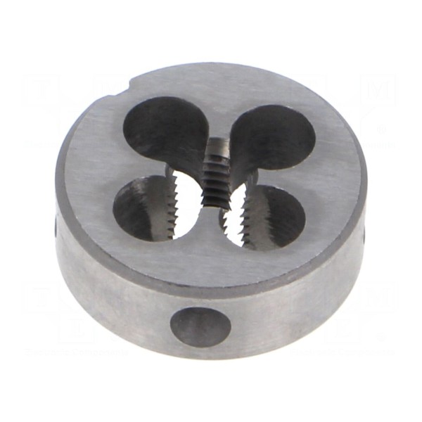 Średnica zewnętrzna narzynki wynosi 25 mm, a jej grubość to 9 mm. Konstrukcja z wysokiej jakości stali zapewnia parametry skrawania wymagane przy obróbce materiałów metalowych.