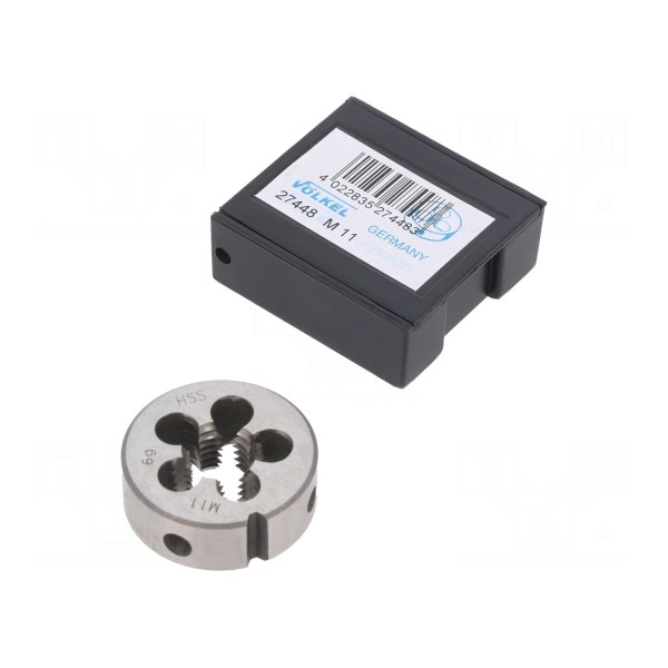 Narzynka VÖLKEL przeznaczona jest do nacinania gwintów metrycznych o rozmiarze M11 i skoku 1,5 mm. Narzędzie zostało wykonane ze stali szybkotnącej HSS, co zapewnia odpowiednią charakterystykę materiałową w procesie obróbki skrawaniem.