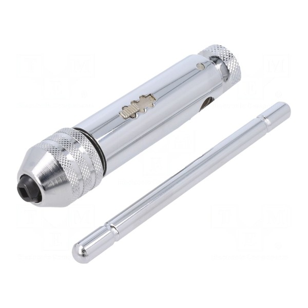 Narzędzie posiada długość 100 mm i jest dostosowane do obsługi gniazd o średnicach 4,5 mm, 4,9 mm, 5,5 mm, 6,2 mm, 7 mm oraz 8 mm. Produkt wykorzystywany jest do prac warsztatowych związanych z ręcznym nacinaniem gwintów.