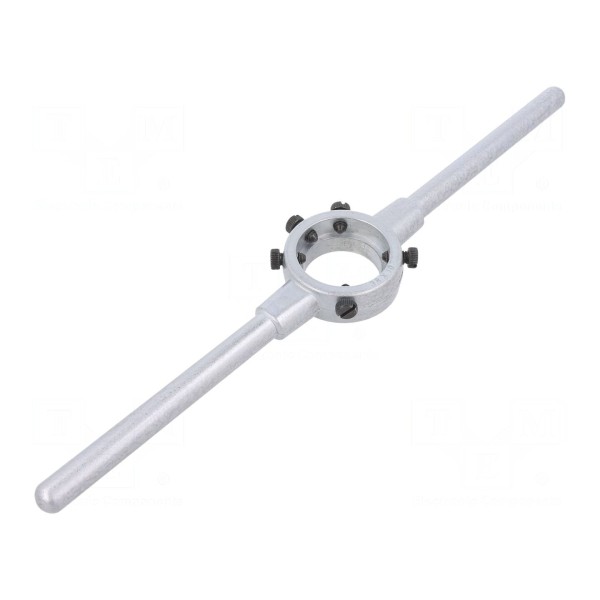 Uchwyt do narzynek o długości 315 mm został zaprojektowany do obsługi narzynek o średnicy 38 mm oraz grubości 10 mm. Narzędzie obsługuje zakres chwytania G 1/4" oraz Mf12-Mf15, zapewniając kompatybilność z elementami wykonanymi zgodnie z normą DIN 223.