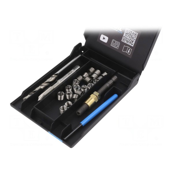 Komplet pozwala na przywrócenie pełnej funkcjonalności połączeń gwintowanych. Konstrukcja narzędzi zapewnia dopasowanie do standardowych parametrów gwintów metrycznych, umożliwiając ich efektywną obróbkę.