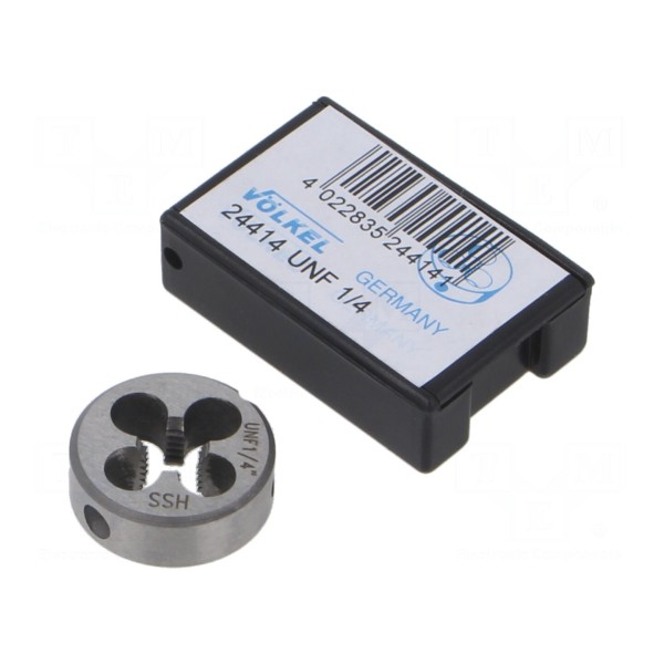 Narzynka wykonana jest ze stali szybkotnącej HSS, przeznaczona do nacinania gwintu zewnętrznego UNF 1/4-28. Element posiada średnicę zewnętrzną 20mm.
