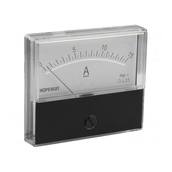 Amperomierz analogowy przeznaczony do montażu panelowego umożliwia pomiar prądu stałego w zakresie od 0 do 15A. Urządzenie charakteryzuje się klasą dokładności 2,5, co zapewnia odczyt parametrów elektrycznych w układach prądu stałego.